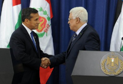وتابع ، "نعمل بإيجابية مع الجهود المبذولة من قبل الرئيس الأميركي باراك أوباما ووزير خارجيته جون كيري والهادفة لدفع عملية السلام خلال الـ9 أشهر المحددة للمفاوضات، كما ثمن الدور الذي تلعبه أطراف الرباعية الدولية ودول أمريكا اللاتينية وجميع الدول الصديقة والشقيقة في العالم، مجددا شكره لهذه الزيارة التي ستسهم في تطوير وتعزيز علاقات الصداقة، كما توجه سيادته بالتحية والتقدير لشعب البيرو الصديق وحكومته".