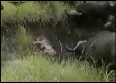 رفع نشطاء على الإنترنت تسجيل فيديو فريداً من نوعه تظهر فيه مجموعة من الجواميس وهي تنقض على أسد وتجهز عليه، علماً أنه لجأ إلى أكثر من حيلة لتفادي مصيره المحتوم في مواجهة خاسرة.