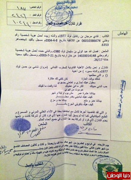 المكتب الاعلامي للفنان مروان الشامي يعرض وثيقة التنازل التي تؤكد و تدحض كلام مرجان والتي تثبت أن الفنان الشامي قد قام بدفع كافة المستحقات المترتبة عليه،.