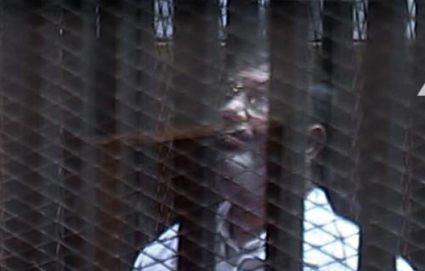وجه الرئيس المعزول محمد مرسى كلمة للشعب المصرى من داخلى قفص الاتهام أثناء نظر جلسة محاكمته وعدد من قيادات الإخوان فى قضية الهروب من سجن وادى النطرون