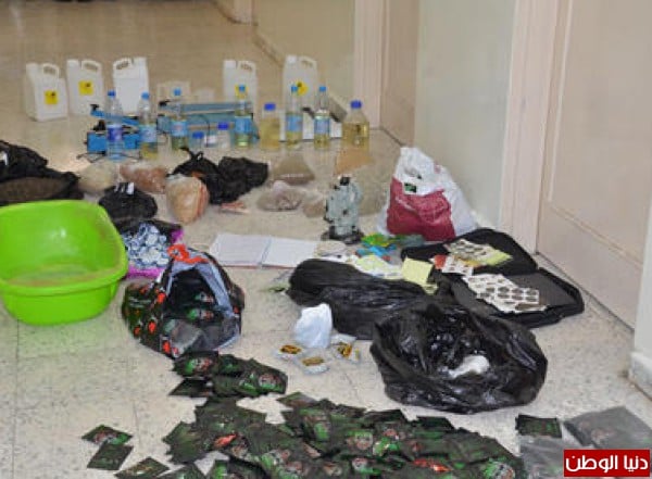 المواد المخدرة، إضافة إلى مواد كيميائية سامه مختلفة وأدوات وماكينات متنوعة تستخدم في التصنيع والتغليف، وما يزال التحقيق جاريا معهم".
