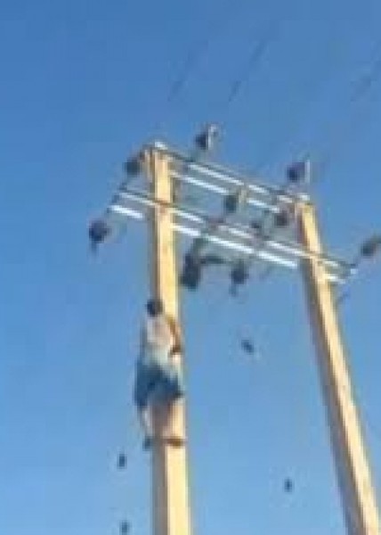والمشهد الذي جرى تم عرضه بعدد من المواقع الإلكترونية، يصور طفلاً صغيراً قام بتسلق عمود كهرباء ضغط عالِ بقصد وضع نهاية لحياته وذلك بسبب عجزه عن مغالبة الأسى الذي يعيش فيه لعدم مقدرته على توفير الدواء لوالدته المريضة وهو يراها تكابد الآلام.