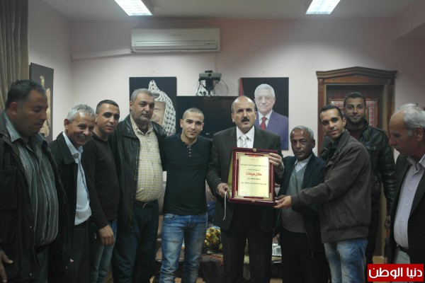 قدمت فعاليات مخيم جنين درعا تكريميا لمحافظ جنين اللواء طلال دويكات ، تقديرا لجهوده لشمل وتزويج عدد من شباب مخيم في العرس الجماعي الذي أقيم في أريحا في أريحا تحت رعاية سيادة الرئيس محمود عباس ، وذلك خلال الزيارة التي قام بها الوفد ، اليوم ، ممثلين عن اللجنة الشعبية ولجنة المتابعة العليا وأمين سر إقليم حركة فتح في المحافظة عطا أبو ارميله والشبان من حركة الجهاد الإسلامي الذين شملهم المكرمة الرئاسية .
