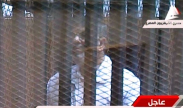 ووضع مرسي في قفص زجاجي منفصل عازل للصوت لمنعه وباقي المتهمين من مقاطعة المحاكمة.