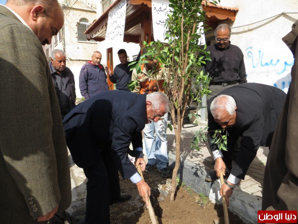 رئيس بلدية جنين يشارك في تجميل مداخل المخيم بالاشجار