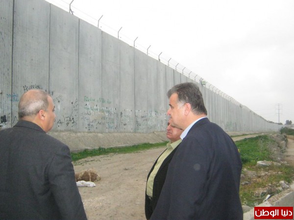 كما وتوجه الوفد الذي رافقه الأمين العام لرؤية جدار الفصل العنصري الذي يحيط بمدينة قلقيلية وكيف تمت مصادره آلاف الدنومات الزراعية وضمها إلى داخل الجدار، وكيف حال دون وصول أصحابها إليها.
