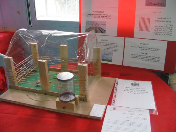 مدرسة هشام بن عبد الملك الثانوية بمشروع ( استخدام الطاقة الخضراء في الدفيئة الزراعية )" . من إعداد الطالب أثير عريقات