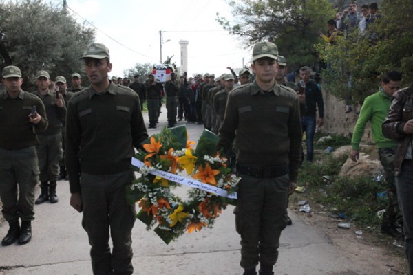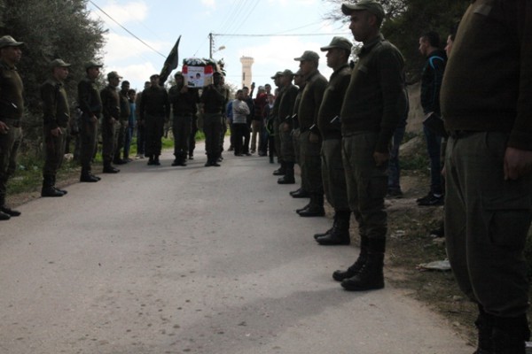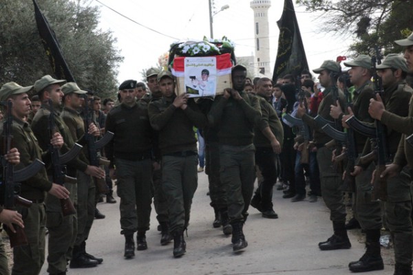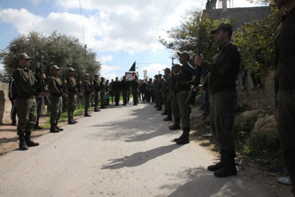 قوات الأمن الوطني والأجهزة الأمنية يشاركون تشييع رفات الشهيد جرادات من بلدة السيلة الحارثية بمحافظة جنين