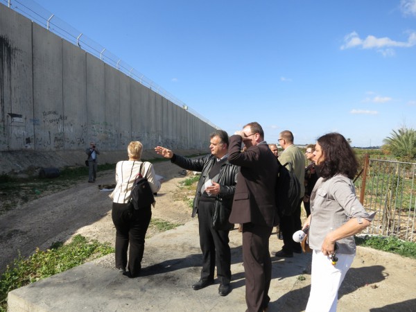 كما ورافق الامين العام واعضاء الامانة العامة وعدد من رؤساء النقابات الوفد الضيف في جولة على معبر 'ايال' الحدودي في مدينة قلقيلية لمشاهدة معاناة العمال عند التوجه إلى أماكن عملهم في ساعات الفجر المبكر كما وتوجهوا ايضا لرؤية جدار الفصل العنصري الذي يحيط بمدينة قلقيلية وكيف تمت مصادره آلاف الدنومات الزراعية وضمها إلى داخل الجدار، وكيف حال دون وصول أصحابها إليها.