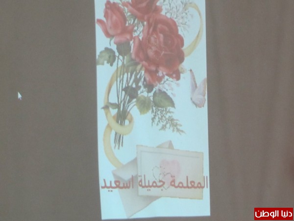 بالاضافة الى ذوي الطالبات وحشد من الحضور ,حيث اشتمل حفل التكريم الذي جرى في مسرح بلدية اريحا ,على قراة القران الكريم والنشيط الوطني الفلسطيني , وكلمات ترحيبة, اضافة الى فقرات شعرية وغنائية, قدمتها الطالبات,وتم توزيع الشهادات التقديرية والجوائز العينية على العديد من الطالبات المبدعات والمجتهدات في مناخ احتفالي مثير ,