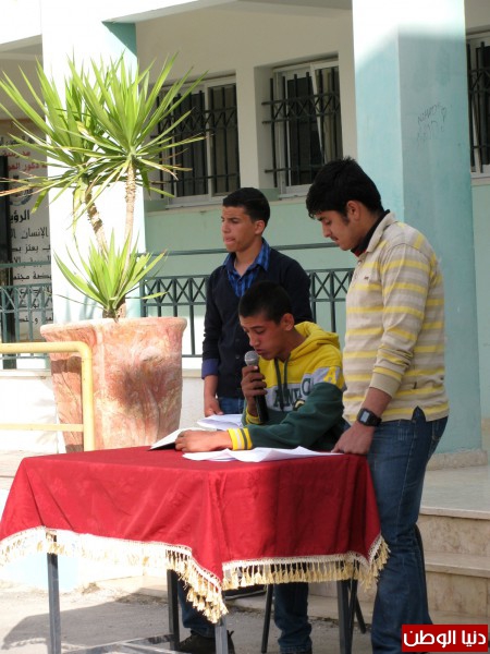هذا و ألقى معلم التربية الإسلامية انس بني عوده كلمة رثا فيها الطالب سويدات و قدم فيها التعازي لذويه ,و ألقى المعلم احمد دراغمة قصيدة رثاء نظمها إحياء لذكرى الطالب سويدات