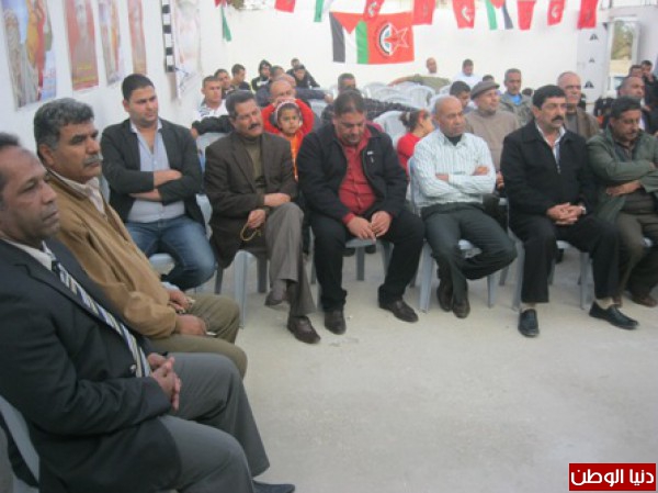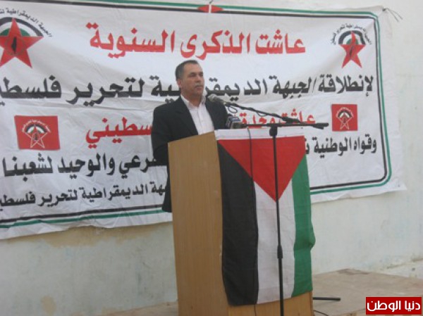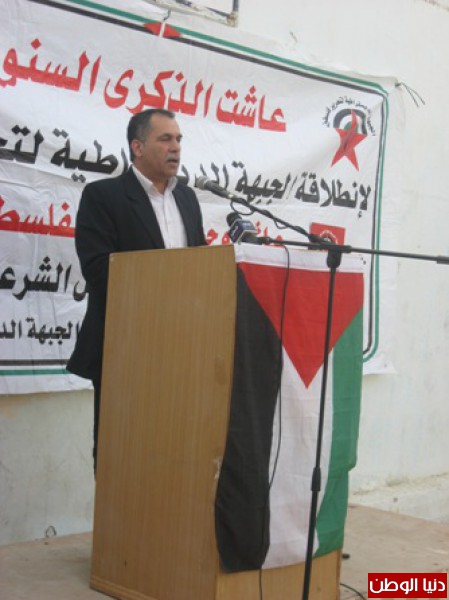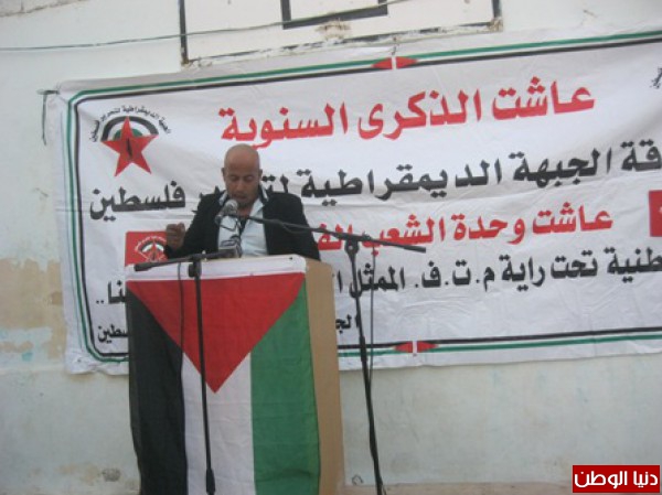 تقدم الرفيق غازي ابو الهيجاء عضو اللجنة المركزية لجبهة التحرير الفلسطينية في كلمة فصائل العمل الوطني في محافظة اريحا والاغوار بالتهنئة للرفيق الامين العام للجبهة الديمقراطية نايف حواتمة واعضاء لجنتها المركزية وكوادرها وعناصرها بالذكرى 45 لانطلاقتها مستذكرا دورها النضالي على مدار ال 45 عاما التي قدمته من شهداء واسرى ومواقف وطنية صلبه ، كما اكد في كلمته على اهمية انهاء الانقسام القائم لما له تاثير سلبي على قضيتنا وابناء شعبنا المناضل ، كما اكد على ضرورة وقف المفاووضات العبثية التي لن تجلب لنا الا المعاناة واضعاف موقفنا الفلسطيني داعيا الى التوجه الى المنظمات الدولية وفضح الممارسات الاسرائيلية في ظل تزايد الانتهاكات الصهيونية ضد مقدساتنا ومضادرة الاراضي والاغتيالات المتكررة بدم بارد ، كما اكد على اهمية توسيع المقاومة الشعبية والفعاليات التضامنية مع الاسرى واهلنا في مخيم اليرموك ، مؤعلى اهمية تدخل المنظمات الدولية لانقاذ حيات اسرانا الابطال .