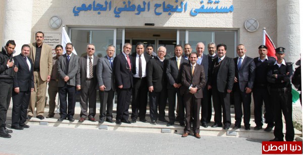 حيث كان في استقباله اعضاء الهيئة الادار ية في المستشفى ومديرها العام الدكتور رياض عامر و عضو مجلس امناء المستشفى الدكتور هاني النابلسي والقائم بأعمال رئيس الجامعة الدكتور ماهر النتشة و عضو مجلس امناء الجامعة ايضا الدكتور فاروق زعيتر وعدد من موظفي الجامعة ايضا.