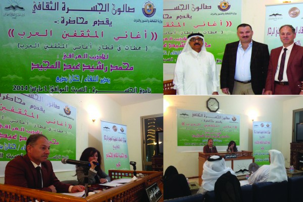 بدعوة من (نادي الجسرة الثقافي الاجتماعي) في الدوحة قدم الأديب العراقي محمد رشيد مساء أمس الأول بحضور القائم بالأعمال العراقي في السفارة العراقية في الدوحة الأستاذ نوار صادق الجميلي وعدد من المعنيين بالثقافة والفنون محاضرة بعنوان (اغاني المثقفين العرب) .