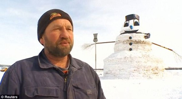 واستغرق نوفاك في تصميم رجل الجليد الخاص به الذي أطلق عليه "الجد" أكثر من شهرين كاملين؛ مستخدماً جذوع الأشجار الضخمة في بناء يديه, وبراميل القمامة في تصميم رأسه وأنفه وعينيه.