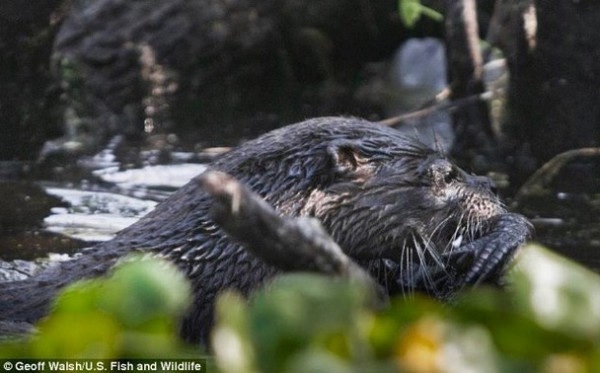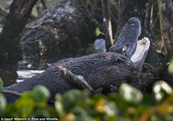 ثعلب ماء يلتهم تمساحاً في بحيرة أمريكية