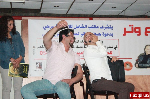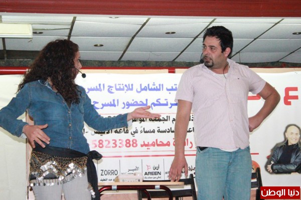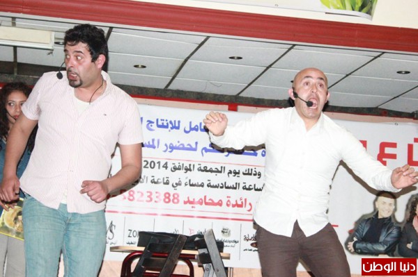 افتتح الامسيه بكلمة ترحيبية من محمد ابو عصبة المسؤول عن تنظيم الحفل والذي شكر الطاقم الفني على تلبيته الدعوه لاحياء الامسيه المميزه التي استقطبت المئات من المشاركين، ثم العرض الساخر الناقد باسلوب هزلي وجريئ ، وتناول الممثلون عدة مواضيع هادفه من القضايا الاجتماعيه السياسية في المجتمع العربي
