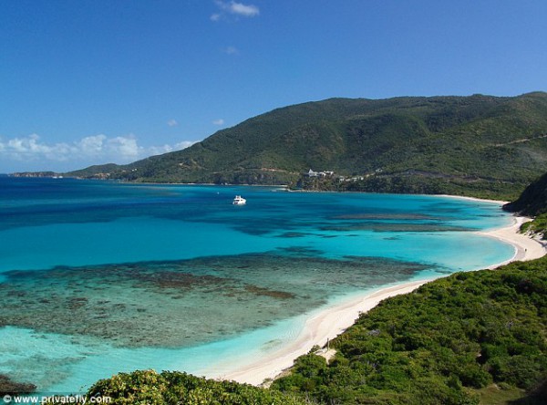 جزيرة جوردا العذراء، ثالث أكبر جزر فيرجن البريطانية، جميلة بلونها الأخضر الزمردي