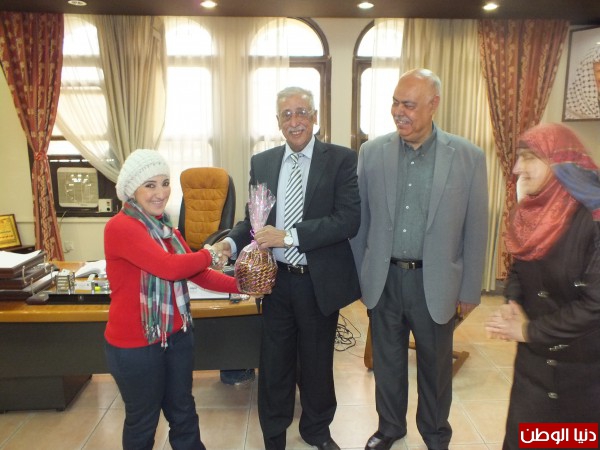 وقد شمل الحفل الذي أقيم في مكتب رئيس البلدية توزيع هدايا رمزية قام بتوزيعها رئيس البلدية واعضاء المجلس البلدي كل من محمد يمني وشهد زكارنة .