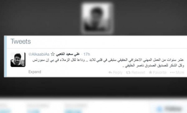 وأعلن المعلق الرياضي الإماراتي، علي سعيد الكعبي، استقالته من ليلحق بزميله المعلق فارس عوض، الذي اتخذ الخطوة نفسها قبل الساعات، ووجه كلاهما الشكر لمسؤولي القناة القطرية، من دون أن يشيرا إلى سبب قرارهما وما إذا كان على علاقة بالأزمة بين بلدهما والدوحة.