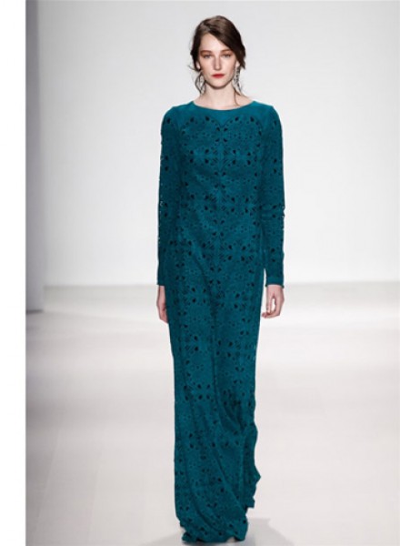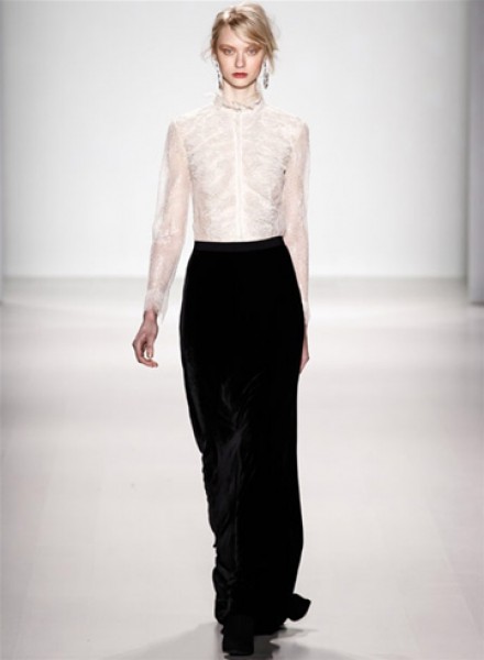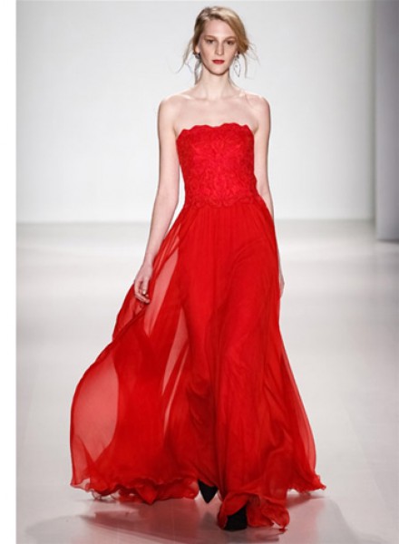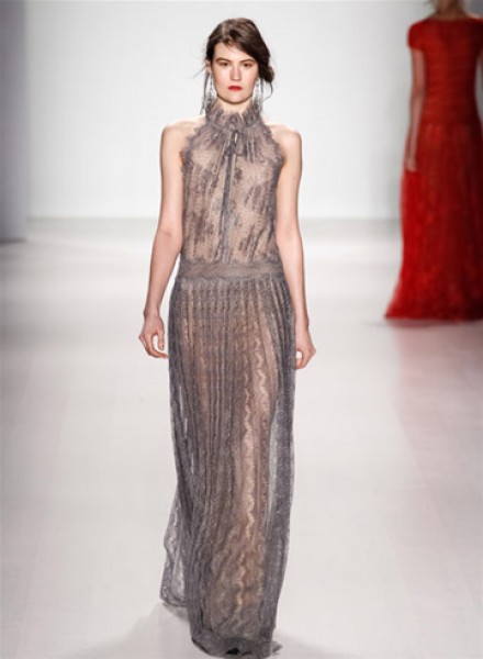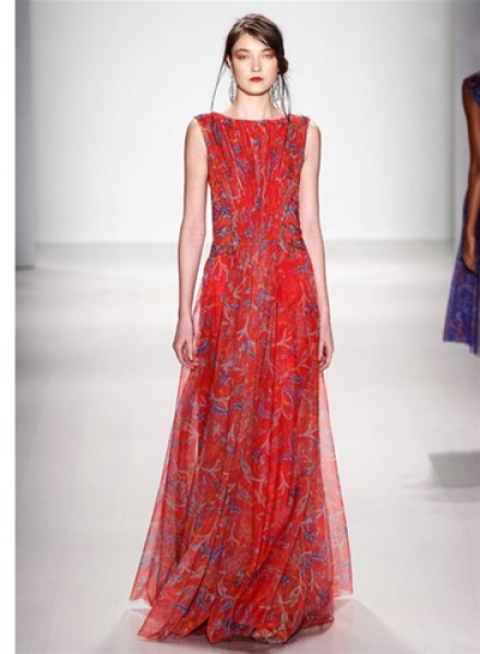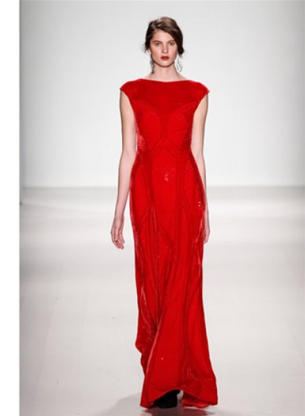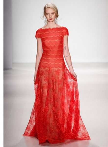 طغت التصاميم الرومانسيّة على عرض Tadashi Joshi في نيويورك، ورأينا الكثير من الفساتين الطويلة من الدانتيل الشفّاف بجميع الألوان، خاصّة الأحمر.