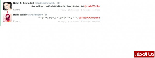 فقامت هيفاء بالاتصال بنضال لتعزيتها بوفاة والدتها , لكن نضال لم ترد على الهاتف بسبب انشغالها , ولكنها غردت اليوم لهيفاء :"