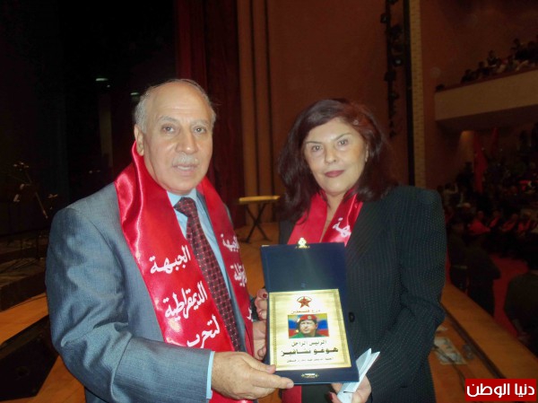 وتحدثت سفيرة فنزويلا السيدة سعاد كرم التي قالت ان فنزويلا كانت وستبقى صديقة للشعب الفلسطيني تؤازره في نضاله على مختلف المستويات، مؤكدة ان الرئيس الفنزويلي مادورو سيسير على ذات النهج الذي سار عليه الرئيس الراحل شافيز.. ثم قدم الرفيق فيصل درع الشهيد الى الرئيس الفنزويلي الراحل هوغو شافيز.