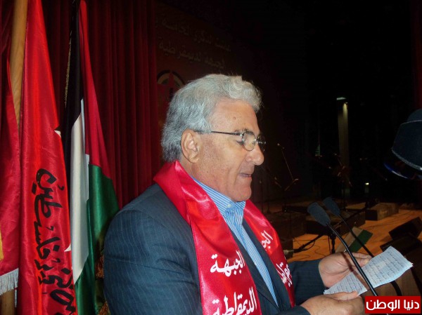كلمة الجبهة الديمقراطية لتحرير فلسطين القاها عضو مكتبها السياسي الرفيق علي فيصل الذي اعتبر ان كل من يتجاهل الثوابت الوطنية الفلسطينية هو خارج عن الاجماع الوطني، لأن الامعان في تجاهل ارادة الشعب الفلسطيني بمواصلة المفاوضات تحت اية شروط لن يؤسس الى لاوسلو جديد .. لذلك على السلطة الفلسطينية والرئيس ابو مازن الانسحاب من المفاوضات ورفض اتفاق الاطار الذي يهبط بسقف المطالب الفلسطينية ويمس جميع حقوقنا ويضعنا امام حلول انتقالية مديدة تؤبد الاحتلال وتحولنا الى جالية قيد الاقامة الجبرية في بلادنا ويقلب المشهد والرواية والاساس التاريخي للقضية الفلسطينية لصالح الرواية الصهيونية بتعميم ما يسمى "يهودية الدولة"..