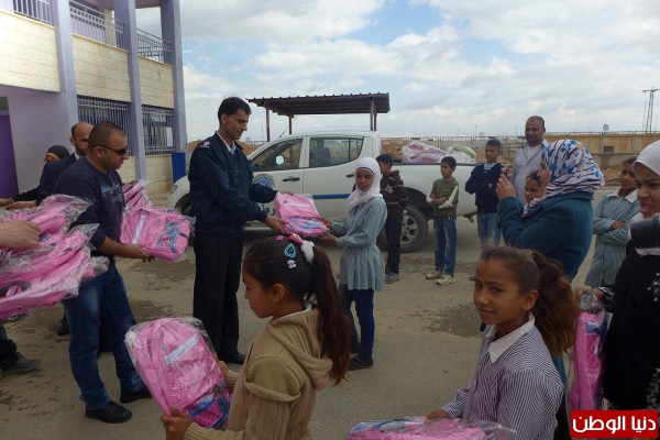 قامت شرطة محافظة أريحا والاغوار بتوزيع مئات الحقائب المدرسية على طلاب المدارس في
