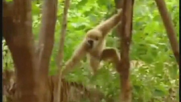 وحاول النمران عبثاً القبض على القرد المشاغب، لكنه كان أسرع منهما في الهرب، ورغم سقوطه في إحدى المرات بعدما انكسر به الغصن، فإنه تمكن سريعاً من الإفلات من مخالب أحد النمرين.