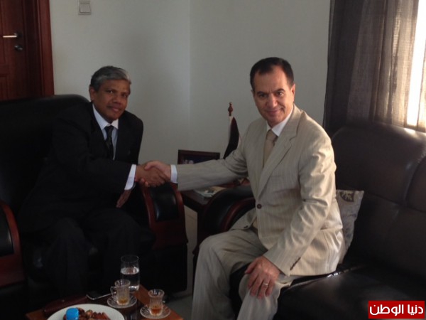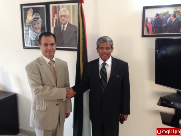 وتهويدها لمدينة القدس , وسوء معاملتهم للأسرى الفلسطينيون الأبطار القابعون في سجون الأحتلال , وشكر السفير أبو زيد ضيفه السفير الهندي على مواقف بلاده الداعمة والمبدئيه تجاه القضية الفلسطينية واتفق السفيران على ضرورة التواصل الدائم والتعاون المشترك
