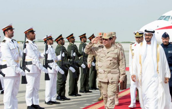 والتقى السيسي خلال زيارته الامارات، التي ايدت الاطاحة بالرئيس محمد مرسي في تموز (يوليو) الماضي، الفريق أول الشيخ محمد بن زايد آل نهيان ولي عهد أبوظبي نائب القائد الأعلى للقوات المسلحة.