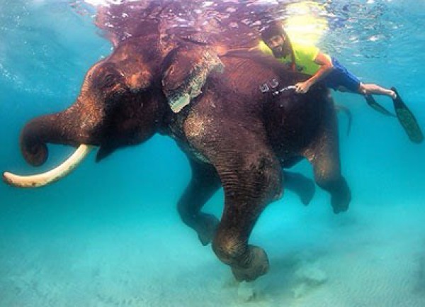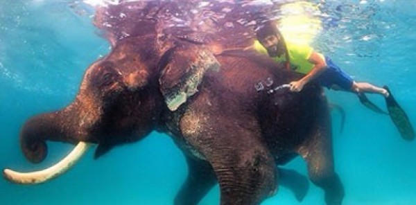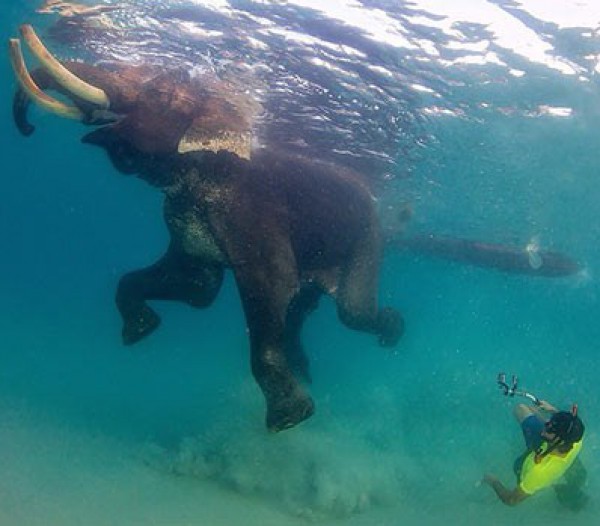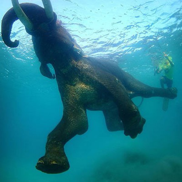 المحزن في الأمر .. أن "راجان" البالغ ٦٤ عاماً هو آخر فيل من فصيلته في العالم ، وهذه الصورة ستعد الأخيرة له في عالم الغواصة"
