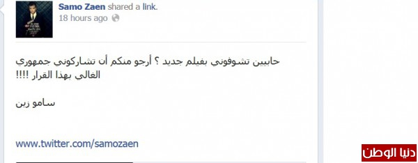 ولكنه متردد , حيث سأل جمهوره عبر مواقع التواصل أن يساعدوه في اتخاذ القرار فكتب :" قائلا :حابيين تشوفوني بفيلم جديد ؟ أرجو منكم أن تشاركوني جمهوري الغالي بهذا القرار ".