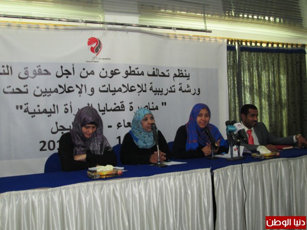 تحالف متطوعون من اجل حقوق النساء يعقد ورشة تدريبيه للإعلاميين حول " مناصرة قضايا المرأة اليمنية "