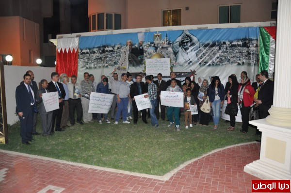 في مقرها بالعاصمة البحرينية المنامة، وقفة تضامن وتأييد ومؤازرة للسيد الرئيسمحمود عباس، ولقراره الفلسطيني الصامد في وجه الضغوطات والتهديدات الإسرائيلية والخارجية التي يتعرض لها، وذلك بحضور حشد غفير من أبناء الجالية الفلسطينية وممثلي وسائل الإعلام في البحرين.