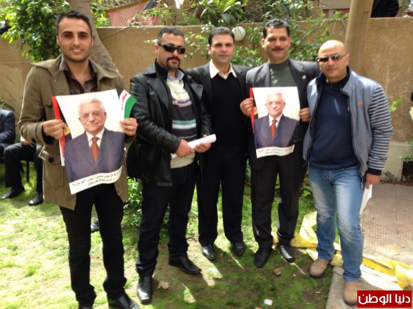 العربية وقفة تضامنية مع الرئيس محمود عباس ابو مازن في مندوبية فلسطين بالقاهرة يوم الاحد الموافق 16/3/2014م، بحضور السفير الفلسطيني د. بركات الفرا وأمين سر وأعضاء قيادة اقليم حركة فتح في مصر والاتحادات الشعبية وجمع من الطلبة وابناء الجالية الفلسطينية، دعما لموقف الرئيس الفلسطيني محمود عباس، في وجه كل الضغوطات الامريكية قبل توجهه الي الولايات المتحدة الامريكية للقاء الرئيس الامريكي باراك اوباما يوم 17 مارس الجاري في البيت الابيض