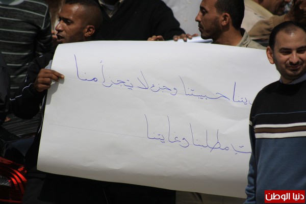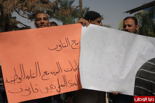 وكان قد رفع المعتصمون اليافطات والشعارات المندده بعدم انصياع المجلس البلدي لكافة الحوارات والنقاشات حول ضرورة تطبيق الاتفاق الذي يضمن حق كافة الموظفين والعاملين في البلدية دون أي تميز او تفريق الا بالقانون حسب ما جاء في البيان الذي وزعته نقابة العاملين في بلدية اريحا .