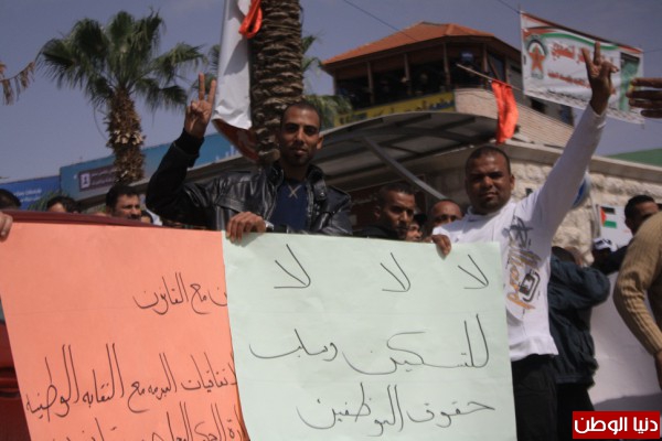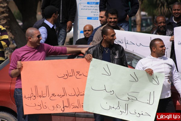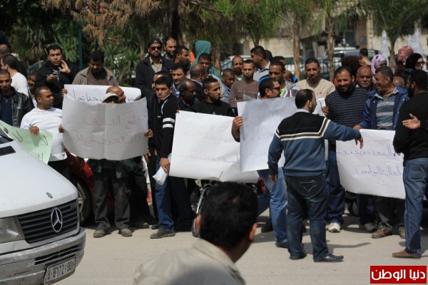نفذ العشرات من موظفي وعمال بلدية اريحا اليوم اعتصاما أمام مقر البلدية في وسط مدينة اريحا احتجاجا منهم لعدم التزام المجلس البلدي بالاتفاقيات الموقعه ما بين المجلس ونقابة العاملين في البلدية والتي تتمحور حول ألية تسكين الموظفين بما يتناسب بالحفاظ على المستقبل الوظيفي لعمال وموظفي البلدية .