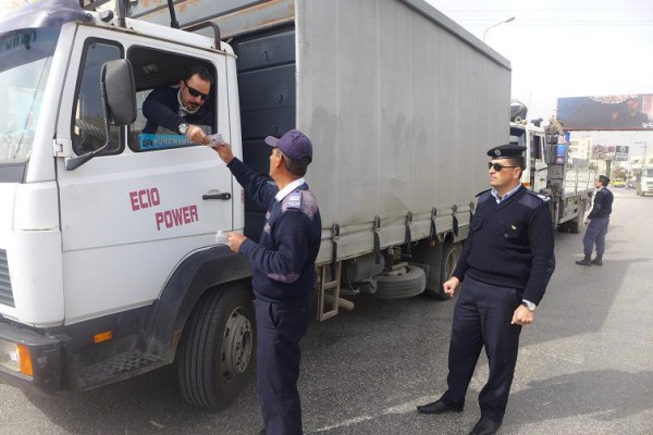 وذكر بيان صادر عن إدارة العلاقات العامة والإعلام في الشرطة أن إدارة شرطة المرور في بيت لحم نظمت صباح اليوم حملة لفحص مركبات الشحن والمركبات الثقيلة للتأكد من مدى صلاحيتها بالسير على الطرقات دون أن تعرض الآخرين للخطر ، حيث قامت طواقم المرور بالانتشار على الطرقات وعلى مفارق مدينة بيت لحم والقرى القريبة وبدأت بحملة فحص للمركبات الشحن والثقيلة وتحرير مخالفات بحق السائقين المخالفين وتنزيل عدد من المركبات عن الشارع وتحويلها لدائرة السير لعدم