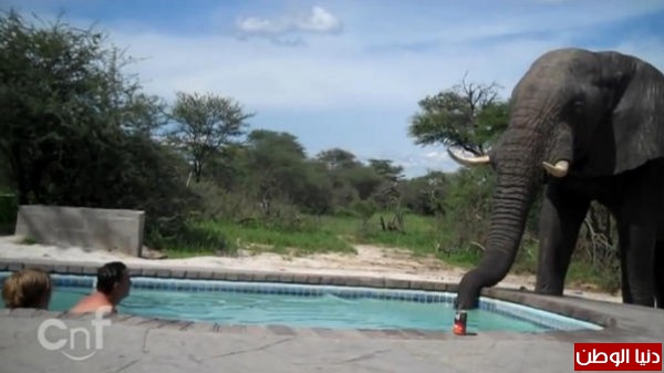 تناقل نشطاء على الإنترنت تسجيل فيديو صامت، وإن لم يخلُ من المؤثرات الصوتية الطبيعية، من بطولة فيل ظمآن لم يجد سبيلاً لكي يروي عطشه إلا بالتسلل إلى مسبح، حيث كان شخصان يسبحان.