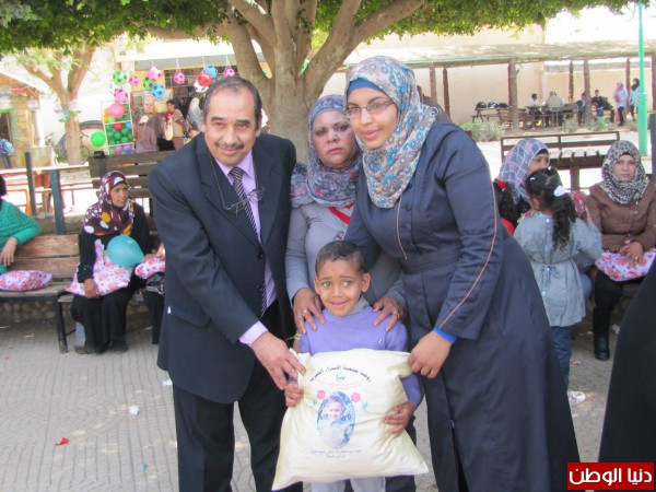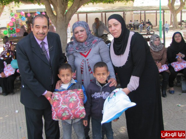 وعن طريق تضحياتها ومعاناتها الدائمة,وتحملها جملة من الظروف السياسية والاقتصادية , وتخلل الاحتفال بيوم الام الفلسطينية فقرات غنائية وترفيهية , ومن ثم توزيع الهدايا والجوائز على الامهات الحاضرات