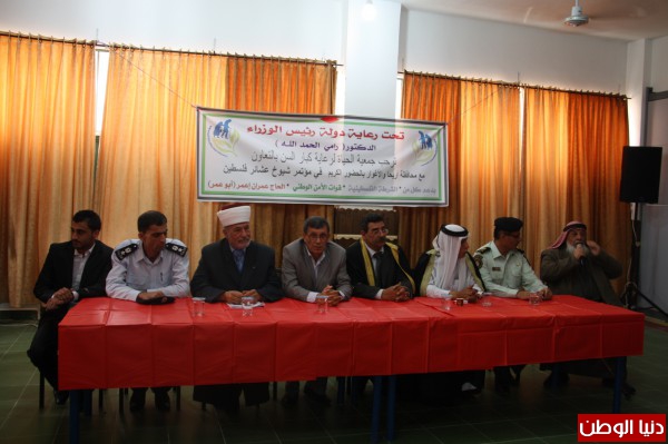 منذر شتات رئيس جمعية الحياة لرعاية كبار السن القى كلمة ترحيبية اشاد بها بدو الوجهاء والشيوخ ورجال الاصلاح في فلسطين في حماية المجتمع واسناد جهود اجهزة الدولة المختلفة في رعاية مصالح الشعب الفلسطيني