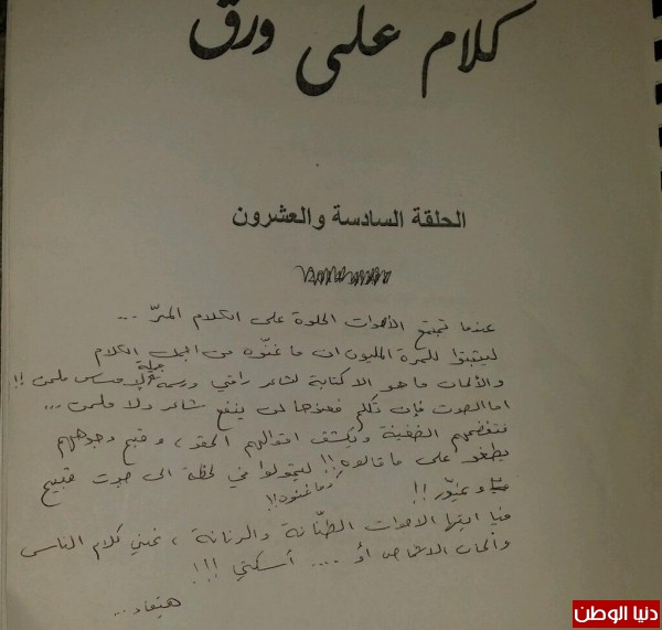 نشرت الفنانة اللبنانية هيفاء وهبي صورة من سيناريو الحلقة 26 من مسلسل "كلام على ورق " وعلقت عليها "الحب .. الحب فقط يمكنه أن يجعلك شخصاً أفضل".