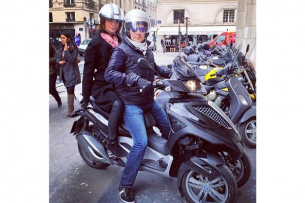 كما نشرت السيّدة علامة في وقت لاحق، صوراً لها مع السوبر ستار على دراجة نارية في باريس حيث يمضيان إجازة عائلية.