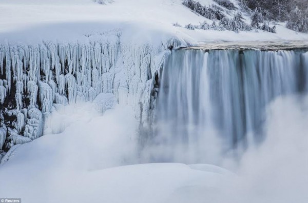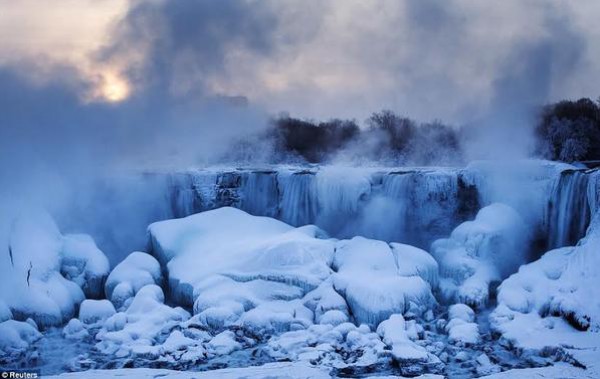 وقالت صحيفة الـ"دايلي ميل" في تقرير مصوَّر عن الظاهرة الخلابة إن ستة ملايين قدم مكعب من المياه التي تتدفق عادة فوق شلالات "نياجرا" تجمدت كلياً، بعد موجة برد قارسة الاثنين الماضي؛ إذ وصلت درجة الحرارة إلى 13 درجة تحت الصفر.