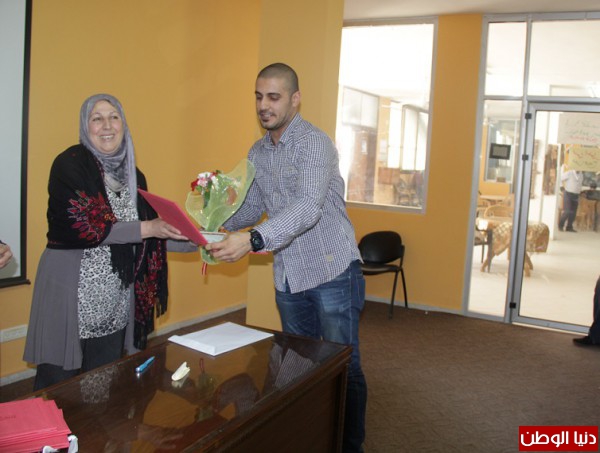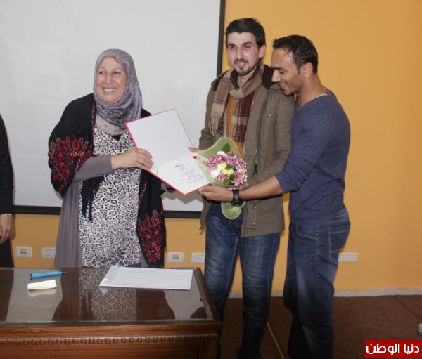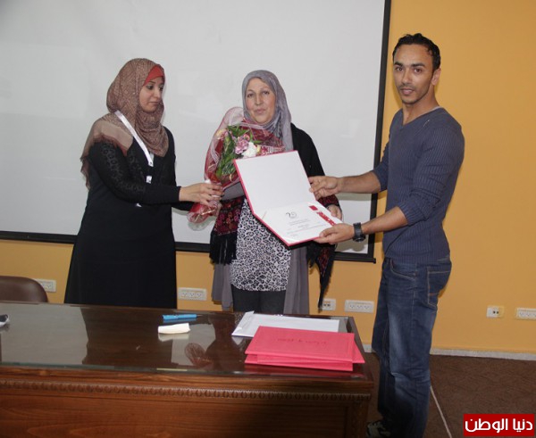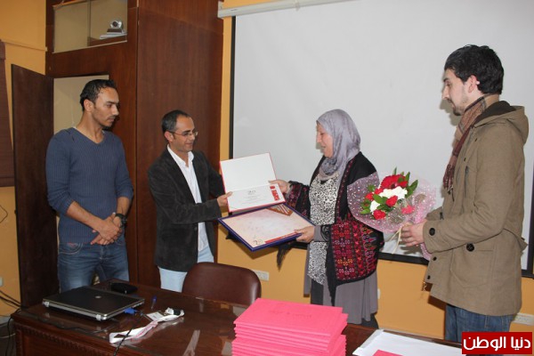 كرمت ادراة جمعية الثقافة والفكر الحر ممثلة بمديرها العام مريم زقوت ،فريق عمل أغنية " بعيدك يا امى " الذي أنتجها المركز الثقافي التابع لجمعية الثقافة والفكر الحر .