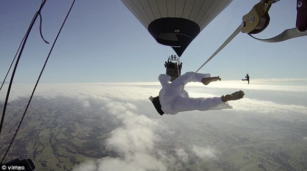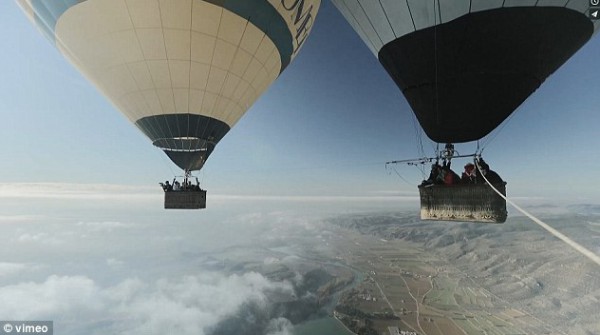 نشرت صحيفة "الديلي ميل" البريطانية تقريراً مصوراً عن محاولات مجموعة من المغامرين الفرنسيين السير على حبل مشدود بين اثنين من بالونات الهواء الساخن، التي تطير في الهواء.
