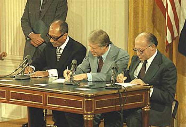 فى مرحلة ما خلال المناقشات مع الجانب الإسرائيلى، وقف كارتر على رجليه ووبخ رئيس الحكومة الإسرائيلية، مناحم بيجين، قائلا، "هل تريد السلام أصلا؟"، وفى اللحظة الأخيرة تمامًا، حيث كان يبدو أن المحادثات ستفشل والرئيس الأمريكى كان متأهبًا للعودة إلى واشنطن بأيدٍ فارغة، فقط حينذاك تم تحقيق الانفراجة التى مكنت كارتر من العودة إلى القاهرة والحصول على موافقة السادات على جميع بنود الاتفاق، وبعد أسبوعين من ذلك، وتحديدًا فى السادس والعشرين من مارس 1979 وقّعت إسرائيل ومصر على معاهدة السلام.