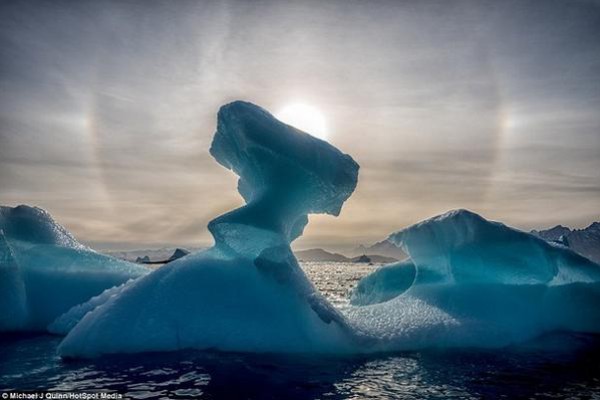 وقال كوين: "لا يمكن أن تتخيل كيف يمكن لتلك المناظر المهيبة للجليد أن تشغل تفكيرك، وكيف أنه مرت آلاف السنين حتى تتكون تلك الأشكال البديعة رائعة الجمال".